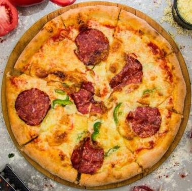 Με σάλτσα ντομάτας, μοτσαρέλα, πεπερόνι, σαλάμι αέρος & κόκκινη πιπεριά
